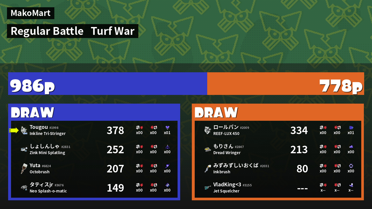 | Weapon | Inkline Tri-Stringer ( Sprinkler / Super Chump) | ||
