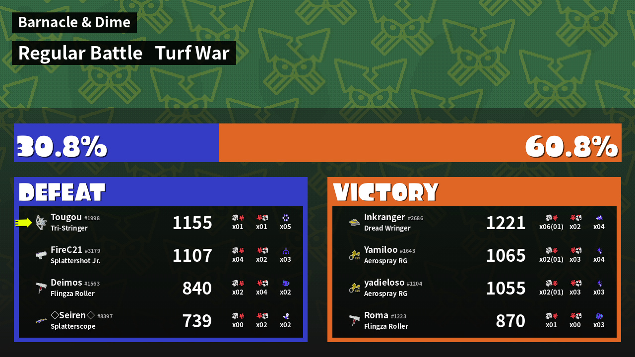 | Mode | Turf War - Regular Battle | ||