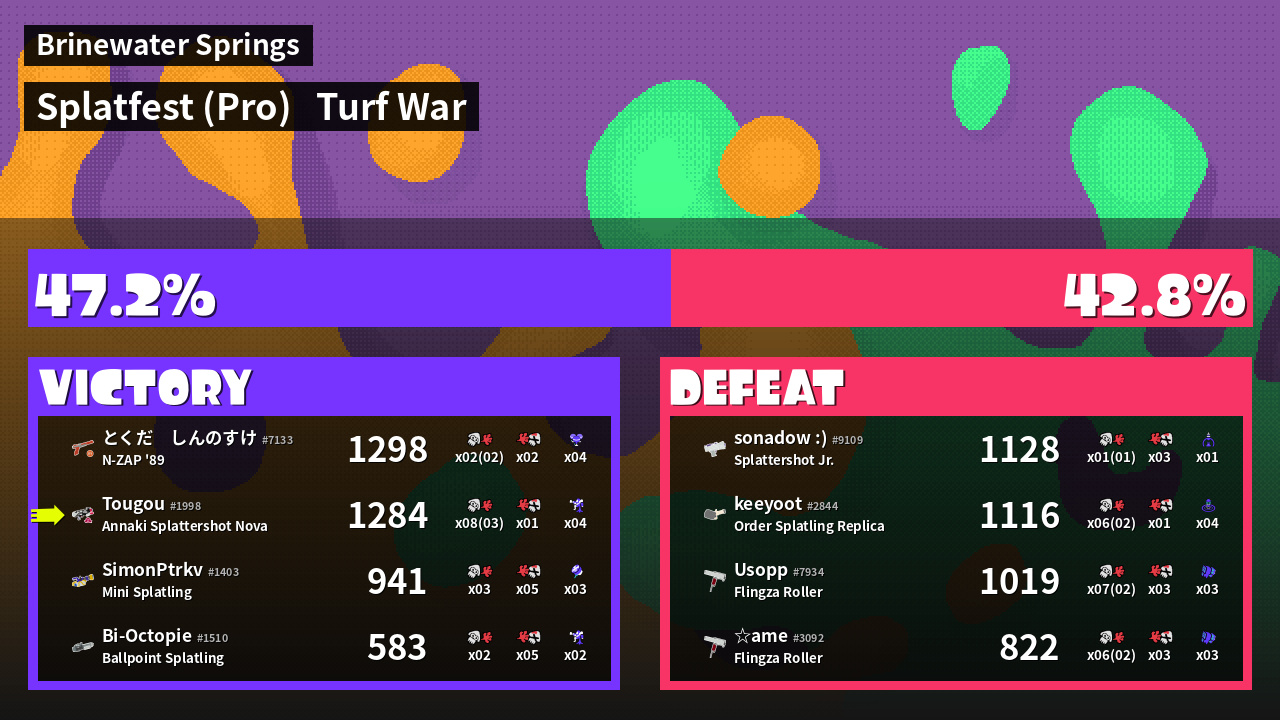 | Medals | #1 Overall Splatter #1 Super Jump Spot #1 Enemy Splatter | ||