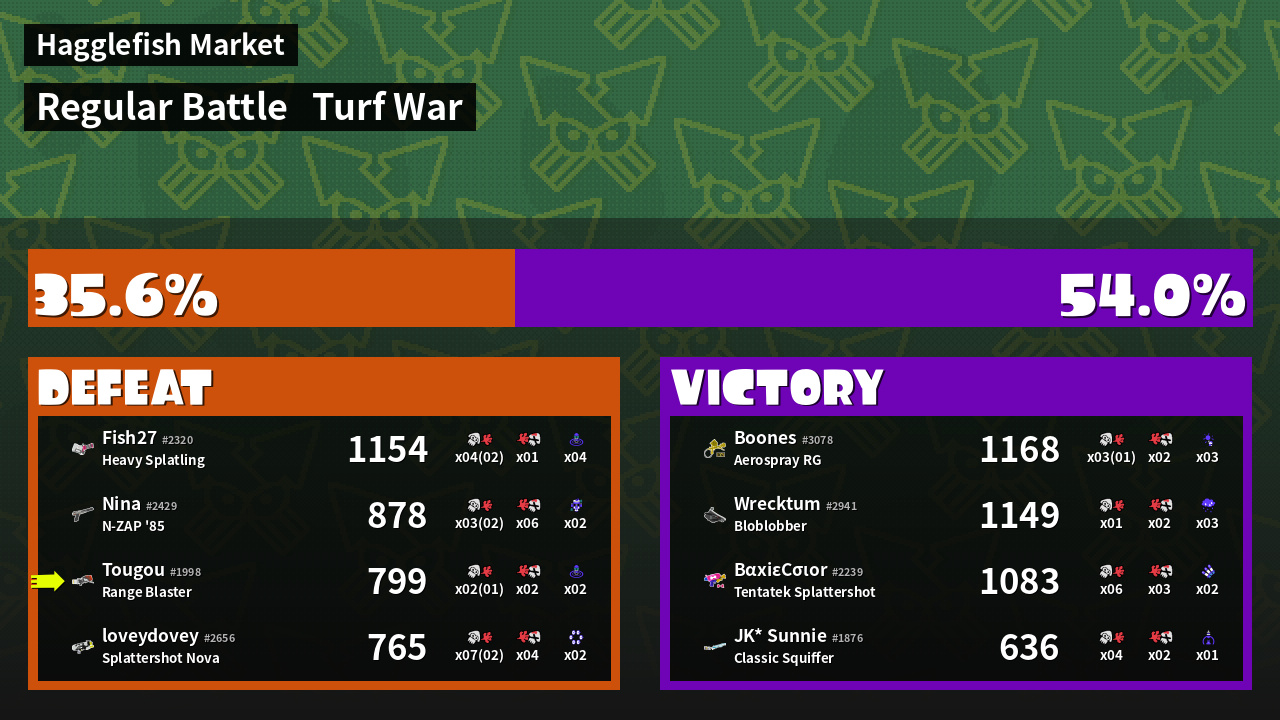 | Medals | #1 Popular Target #1 Enemy-Base Inker #1 Damage Taker |