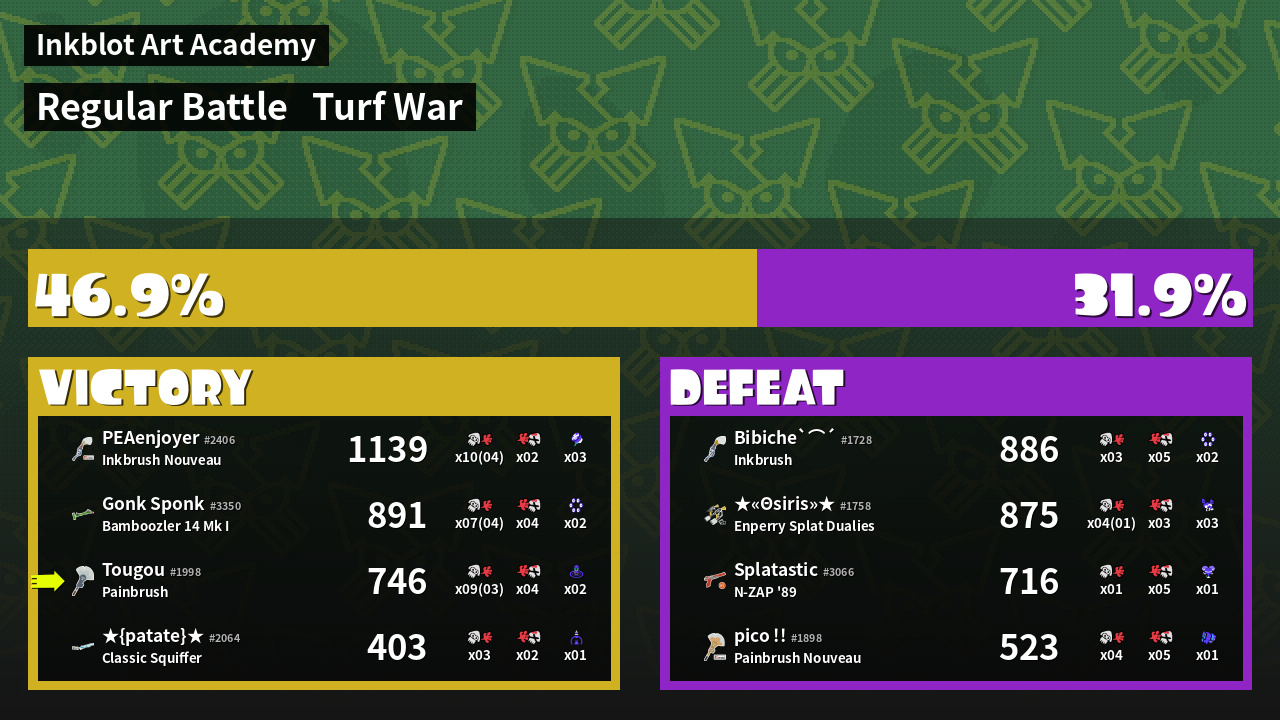 | Weapon | Painbrush ( Curling Bomb / Wave Breaker) | ||