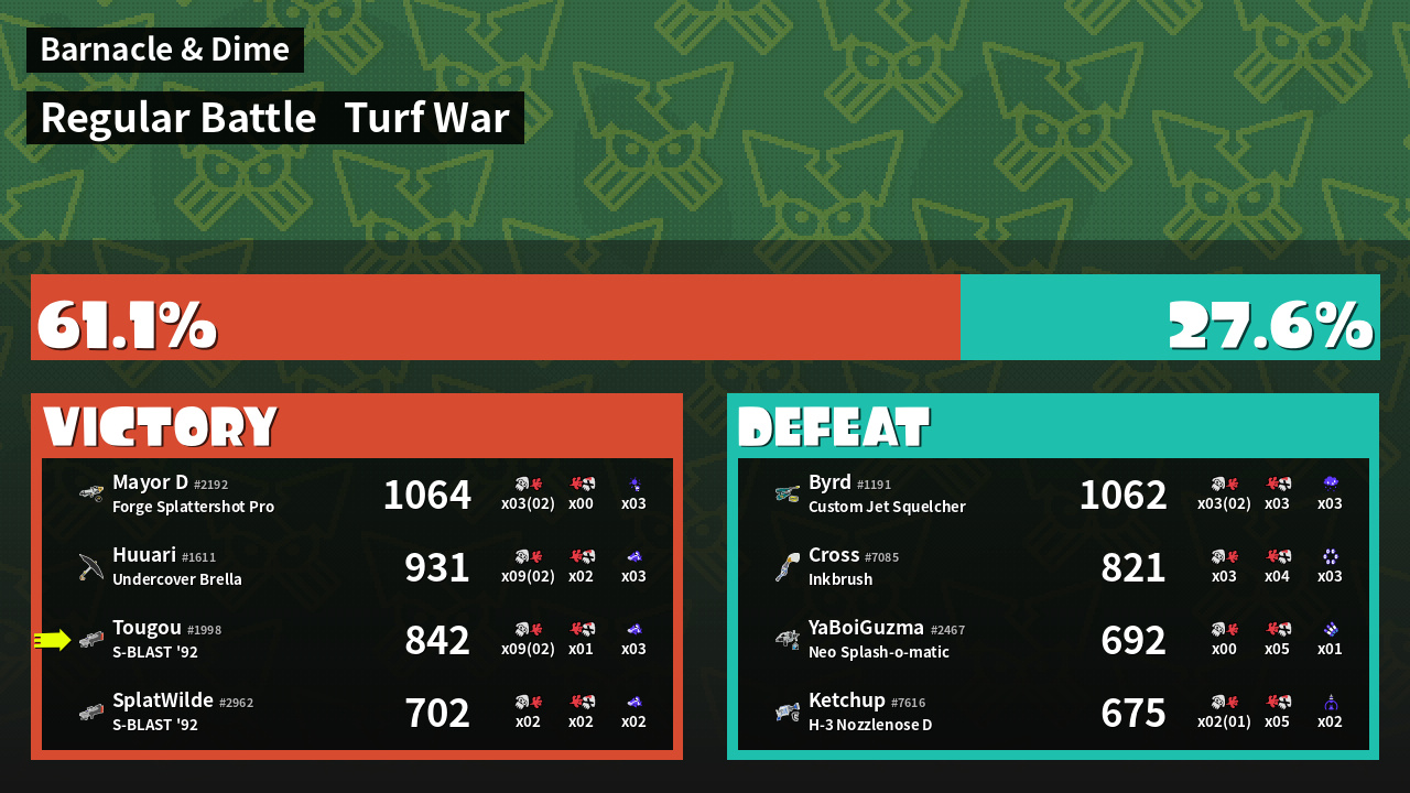 | Mode | Turf War - Regular Battle |