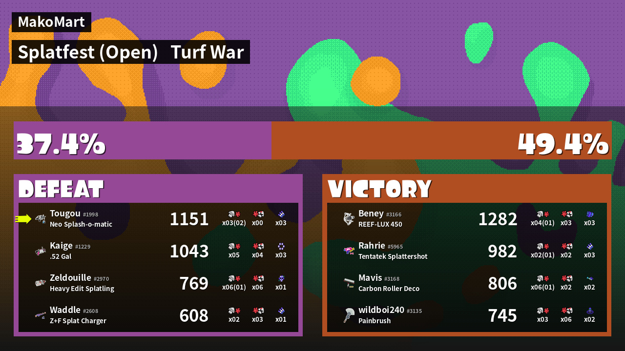 | Medals | #1 Turf Inker #1 Splat Assister #1 Ground Traveler | ||