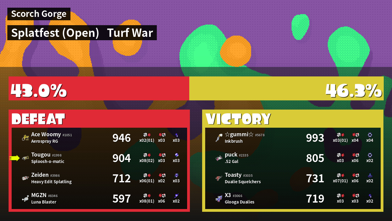 | Medals | #1 Overall Splatter #1 Home-Base Inker #1 Splat Assister | ||