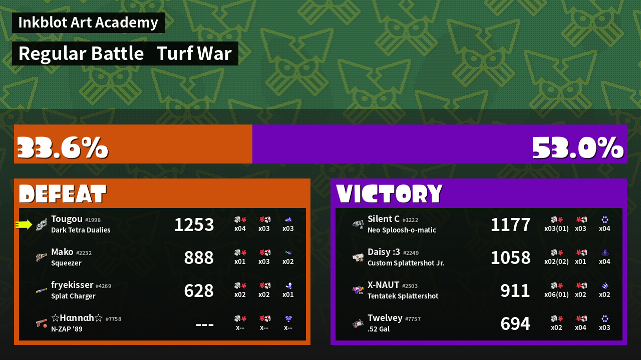 | Medals | #1 Overall Splatter #1 Turf Inker #1 Popular Target |