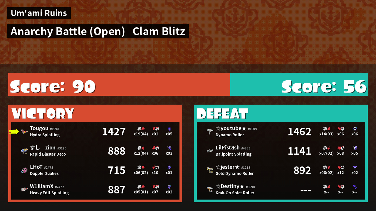 | Mode | Clam Blitz - Anarchy Battle (Open) | ||