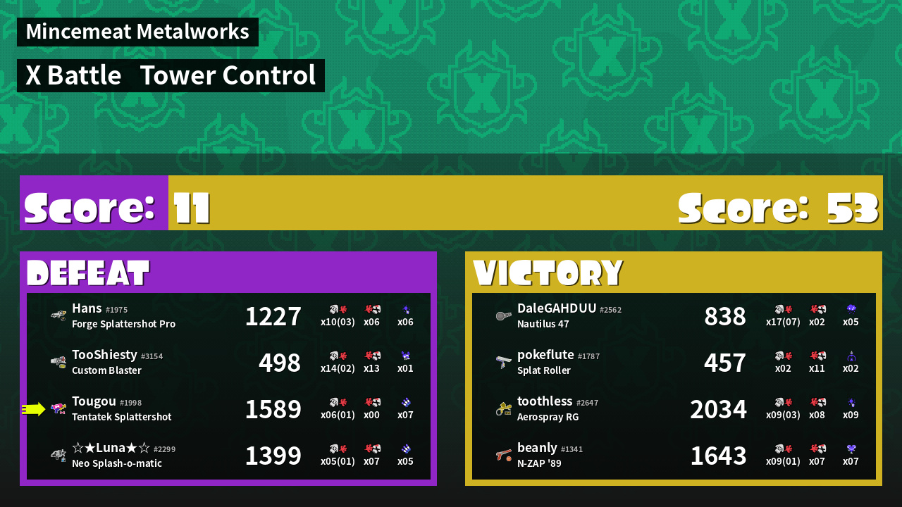 | Weapon | Tentatek Splattershot ( Splat Bomb / Triple Inkstrike) | ||