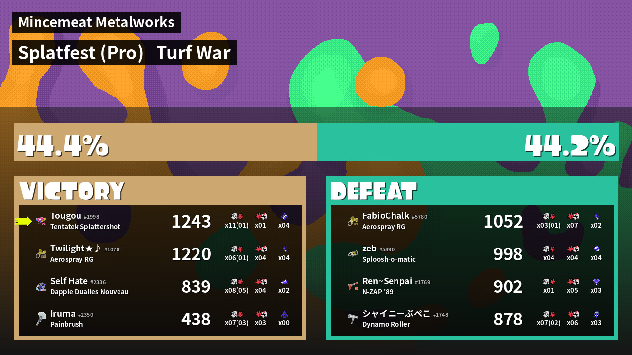 | Mode | Turf War - Splatfest (Pro) | ||