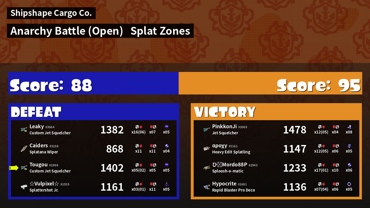 | Mode | Splat Zones - Anarchy Battle (Open) | ||