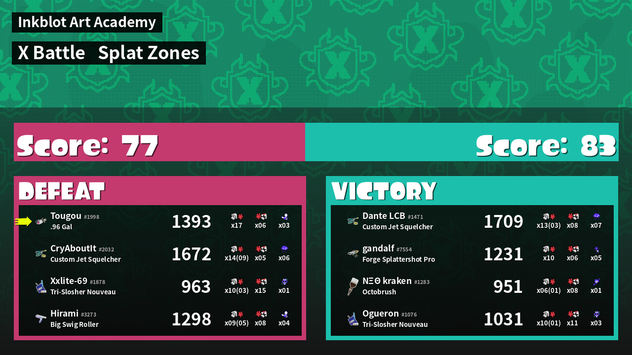 | Medals | #1 Overall Splatter #1 Splat Zone Guard #1 Popular Target | ||
