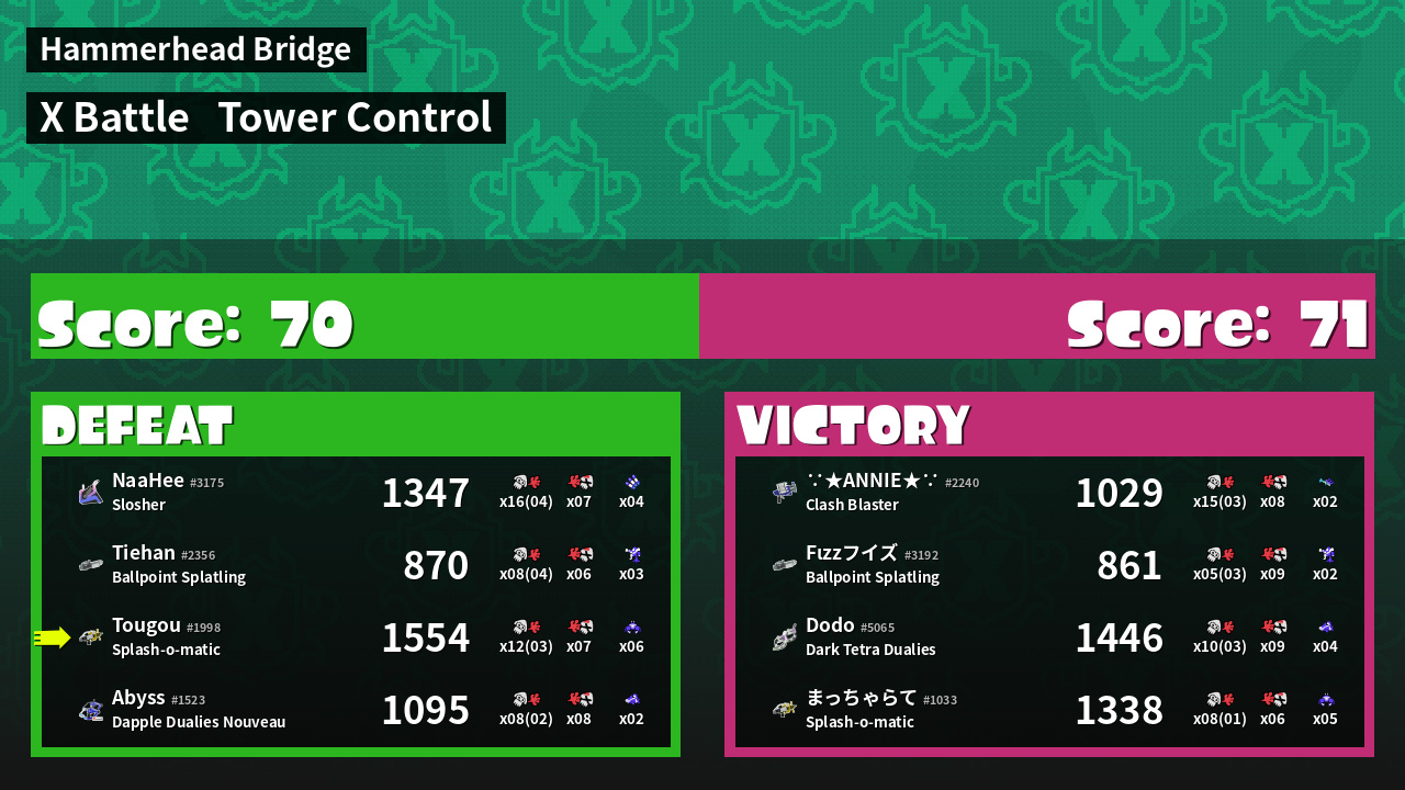 | Mode | Tower Control - X Battle | ||