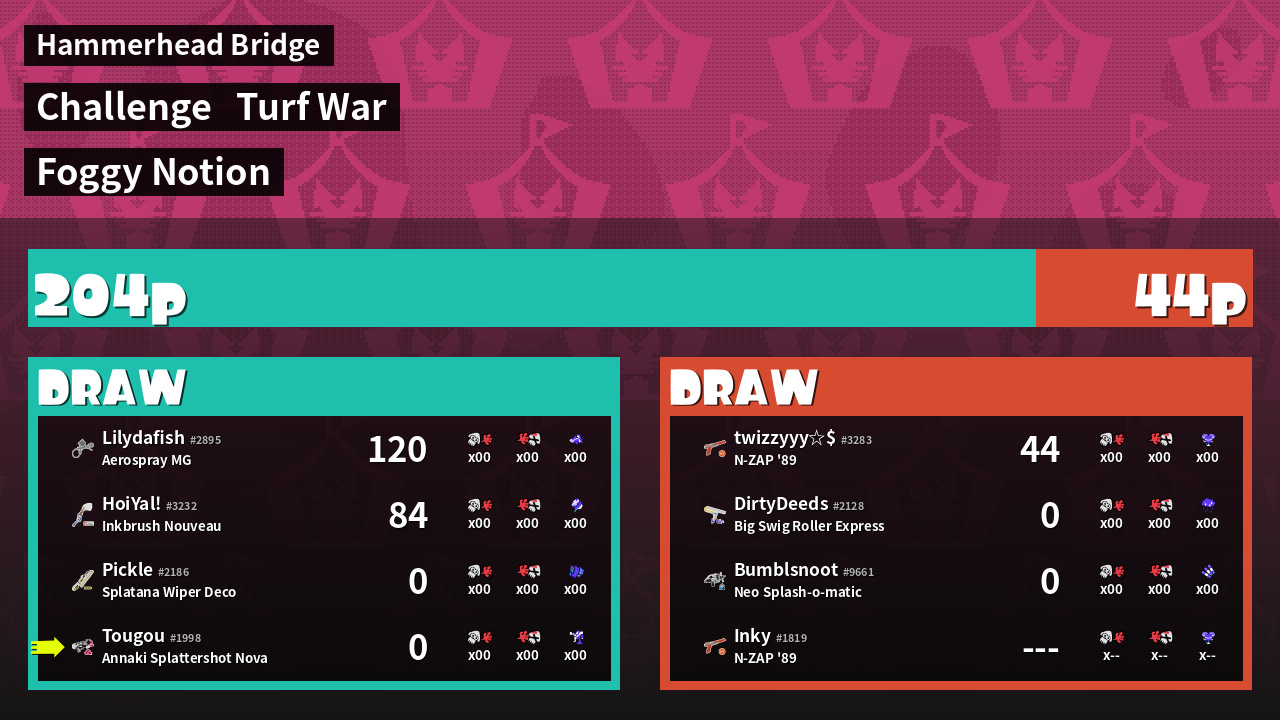| Challenge | Foggy Notion The stakes are high in low-vis battles! | ||