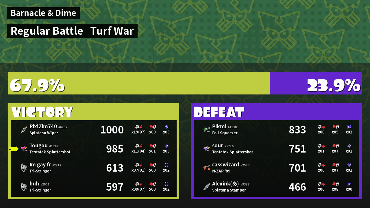 | Medals | #1 Enemy-Base Inker #1 Ink Consumer #1 Triple Inkstrike User | ||
