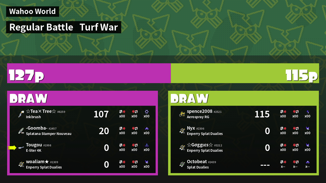| Mode | Turf War - Regular Battle | ||