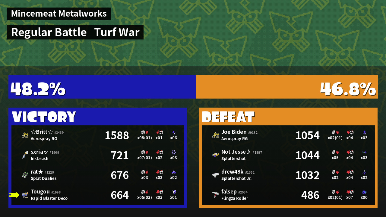 | Mode | Turf War - Regular Battle |