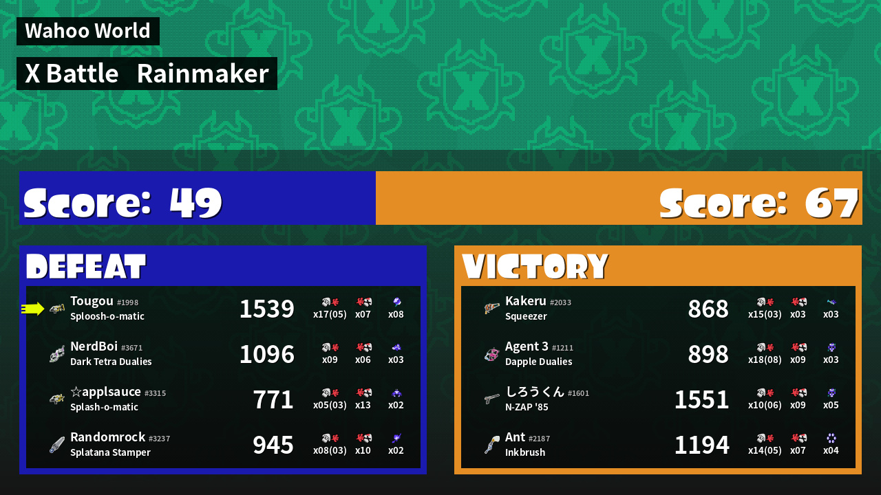 | Medals | #1 Overall Splatter #1 Turf Inker #1 Popular Target | ||