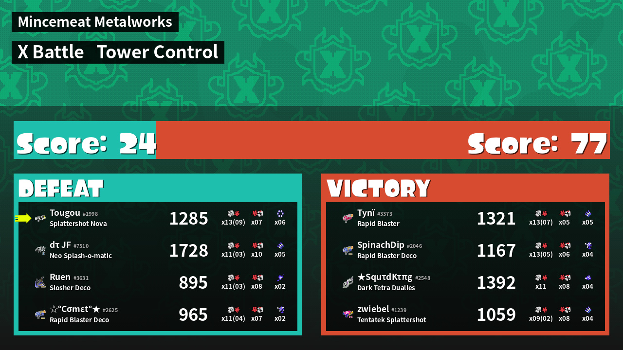 | Medals | #1 Overall Splatter #1 Popular Target #1 Splat Assister | ||