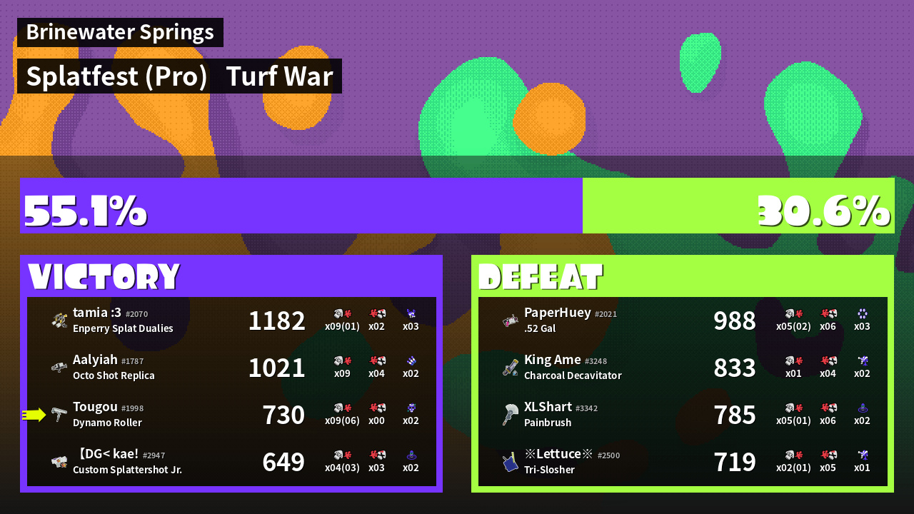 | Medals | #1 Overall Splatter #1 Super Jump Spot #1 Splat Assister | ||