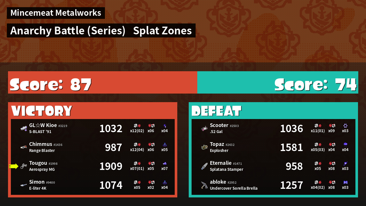 | Mode | Splat Zones - Anarchy Battle (Series) | ||