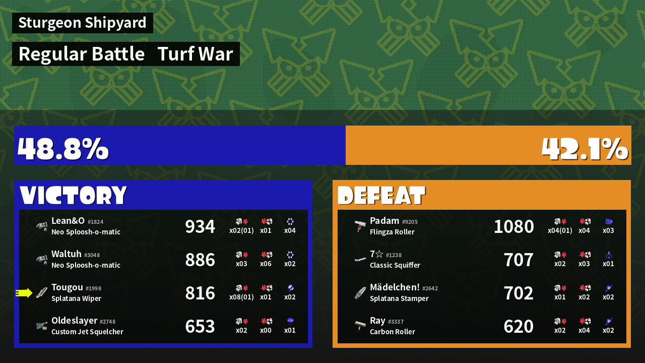 | Mode | Turf War - Regular Battle | ||
