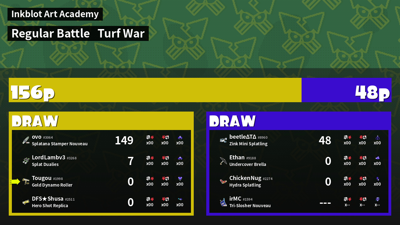| Weapon | Gold Dynamo Roller ( Splat Bomb / Super Chump) | ||