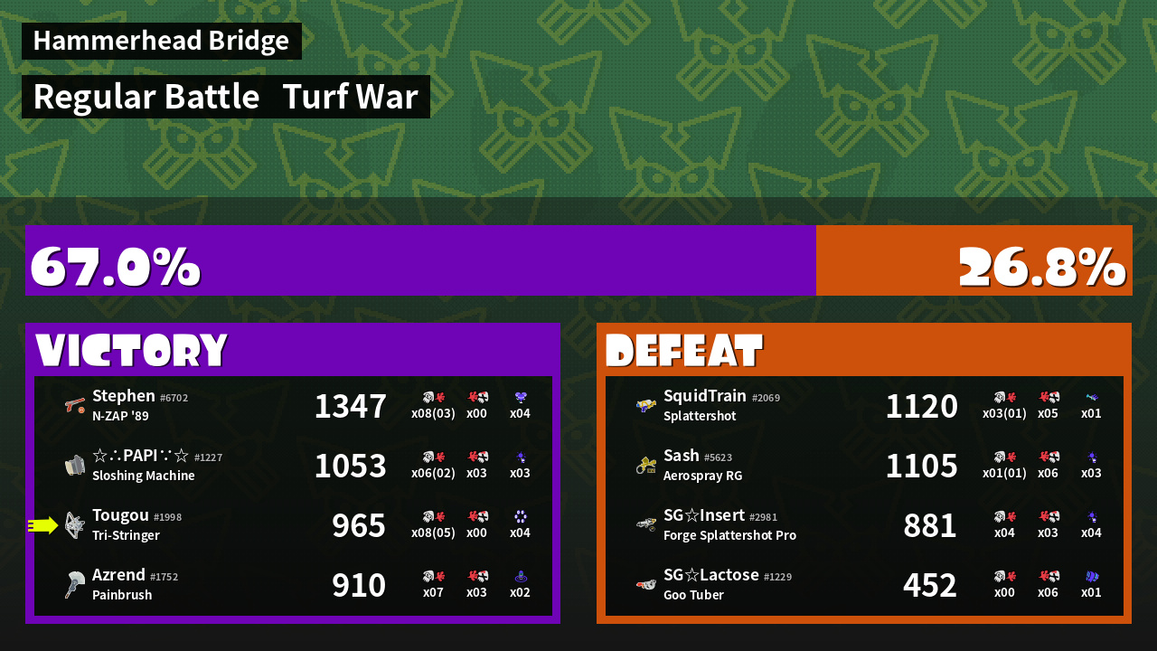 | Medals | #1 Overall Splatter #1 Popular Target #1 Super Jump Spot | ||