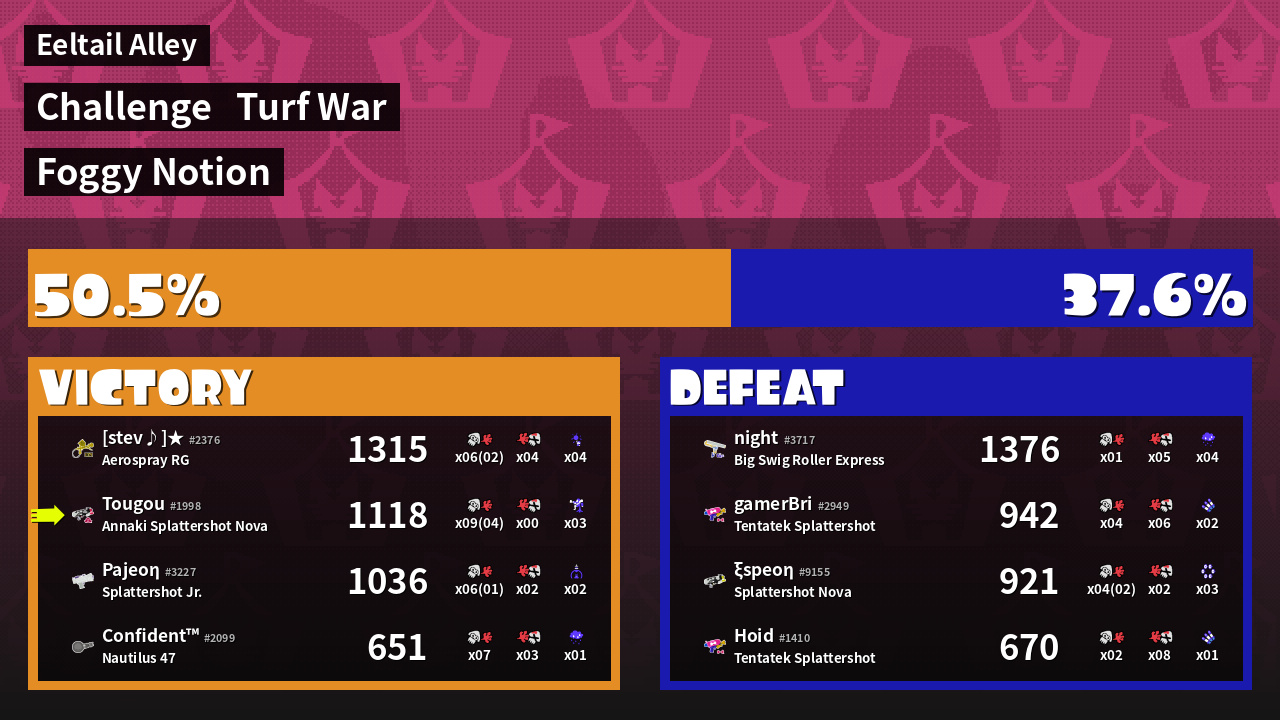 | Medals | #1 Overall Splatter #1 Super Jump Spot #1 Splat Assister | ||