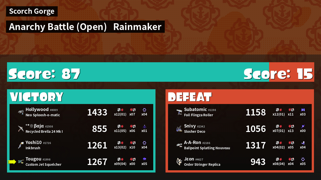 | Mode | Rainmaker - Anarchy Battle (Open) | ||