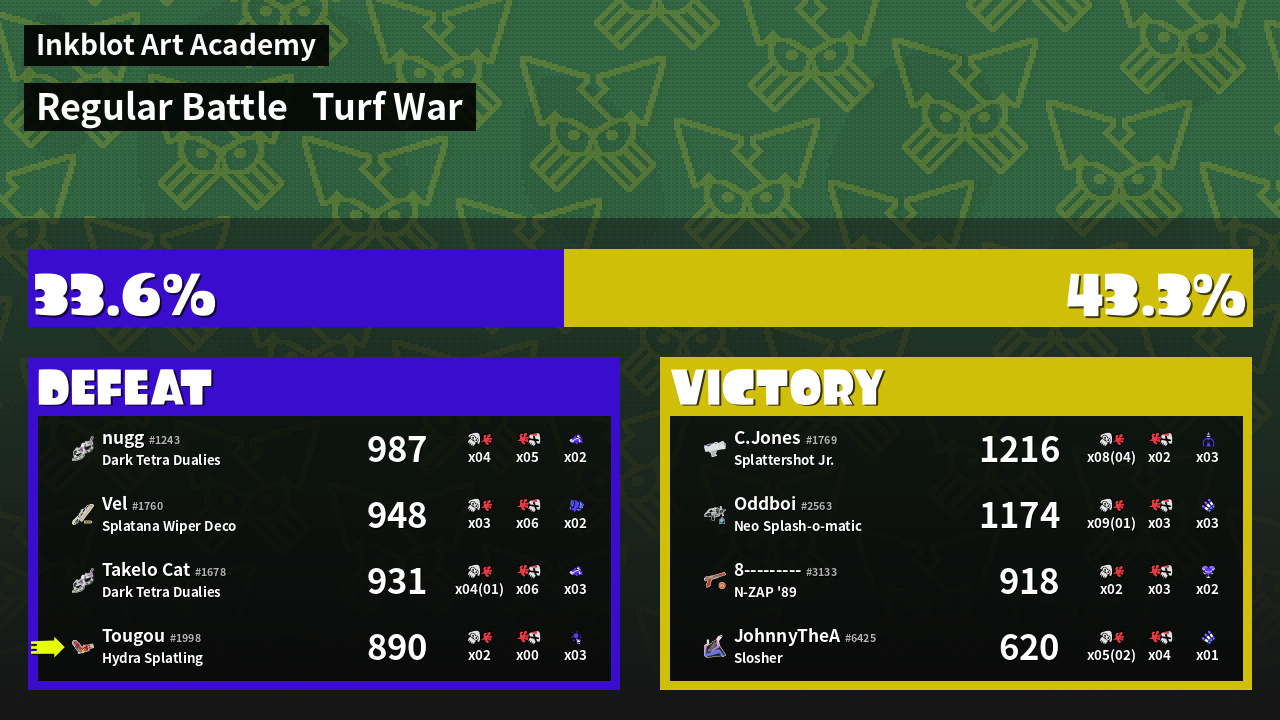 | Mode | Turf War - Regular Battle | ||