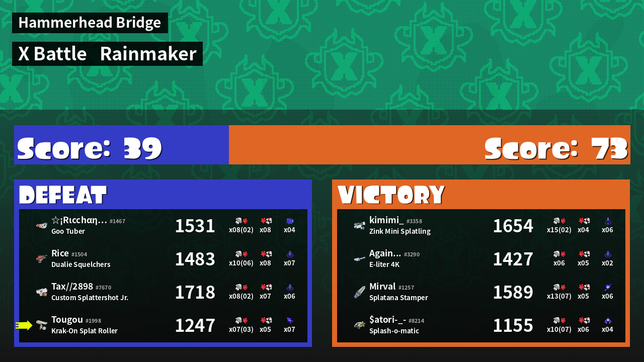 | Medals | #1 Ground Traveler #1 Kraken Royale User #2 Splat Assister | ||