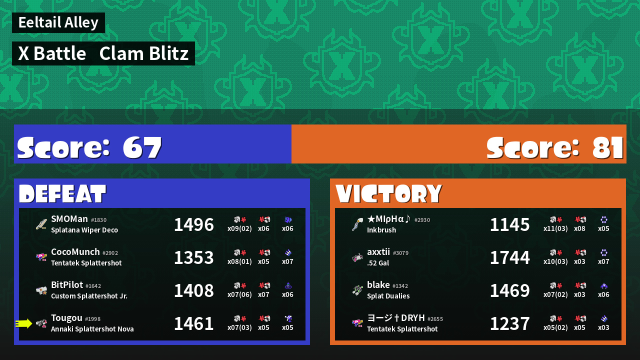 | Weapon | Annaki Splattershot Nova ( Ink Mine / Inkjet) | ||