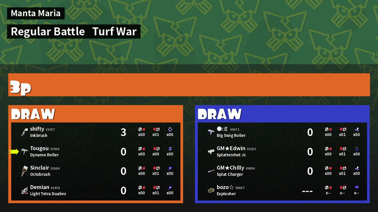 | Mode | Turf War - Regular Battle | ||
