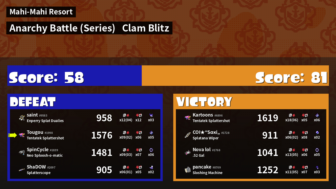 | Mode | Clam Blitz - Anarchy Battle (Series) | ||
