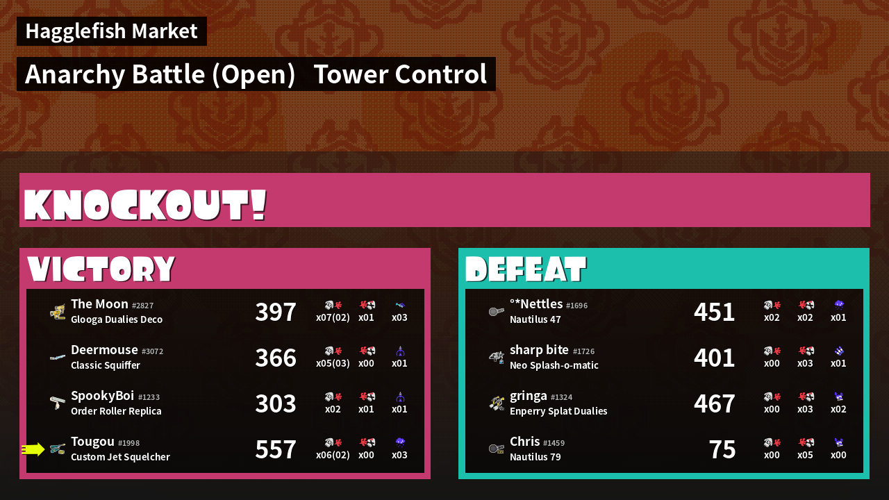| Medals | #1 Turf Inker #1 Ink Consumer #2 Overall Splatter | ||