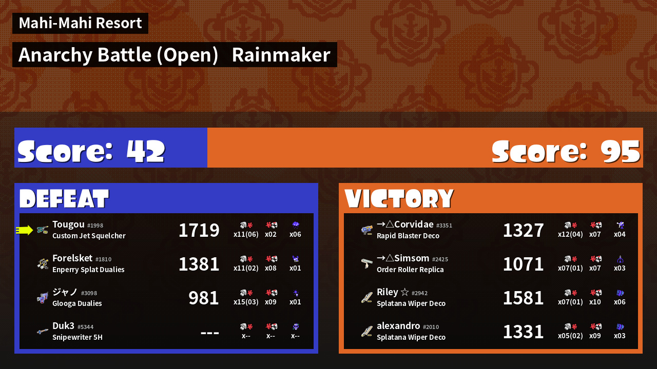 | Mode | Rainmaker - Anarchy Battle (Open) | ||