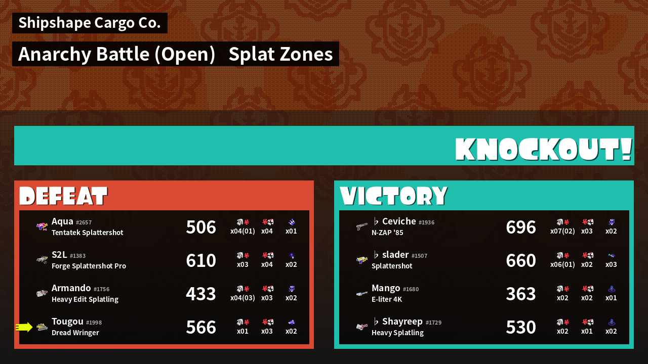 | Mode | Splat Zones - Anarchy Battle (Open) | ||