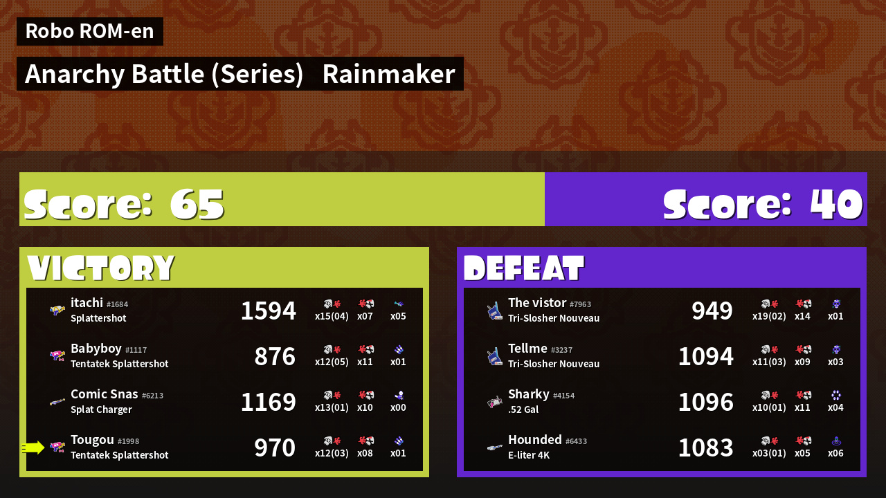 | Medals | #1 Checkpoint Breaker #1 Rainmaker Stopper #1 Triple Inkstrike User | ||
