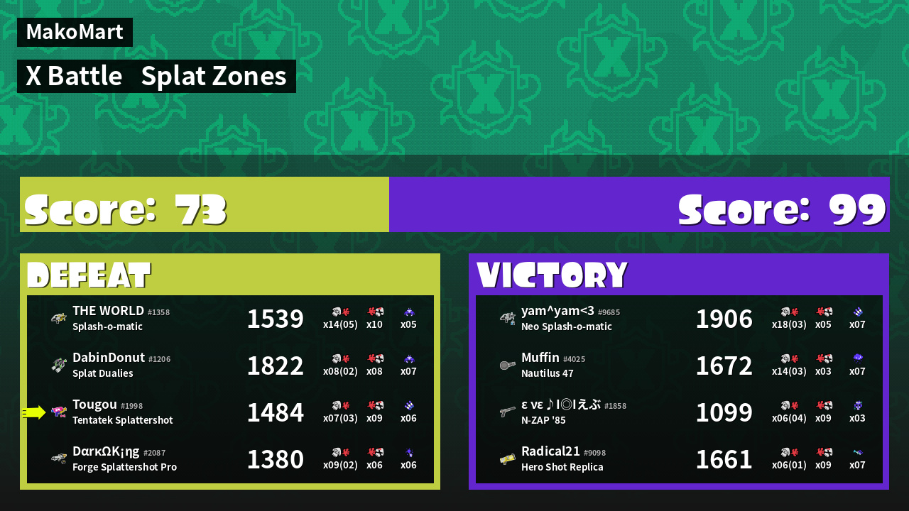 | Mode | Splat Zones - X Battle | ||