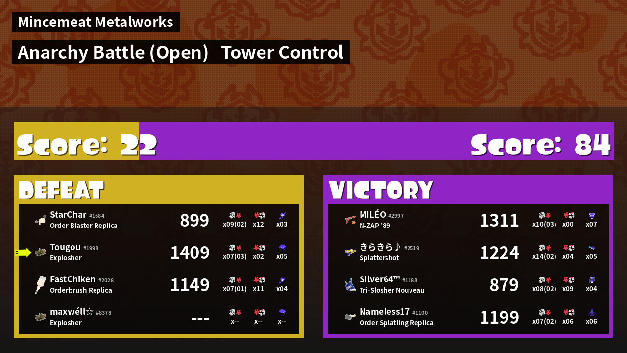 | Mode | Tower Control - Anarchy Battle (Open) | ||