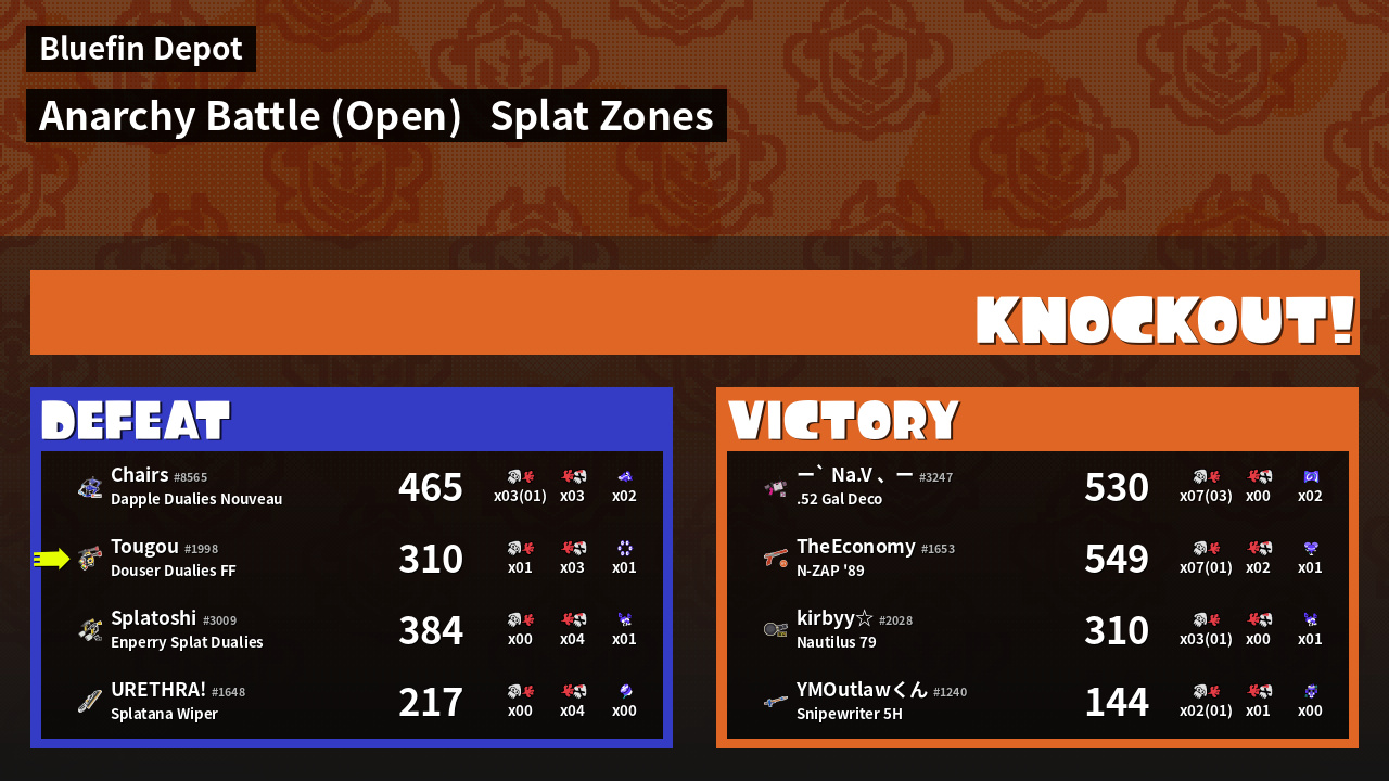 | Mode | Splat Zones - Anarchy Battle (Open) | ||