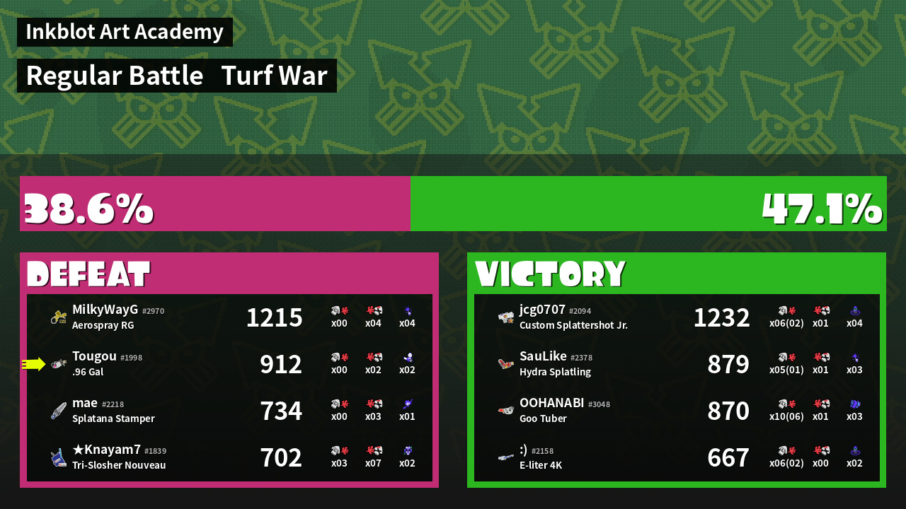 | Mode | Turf War - Regular Battle | ||