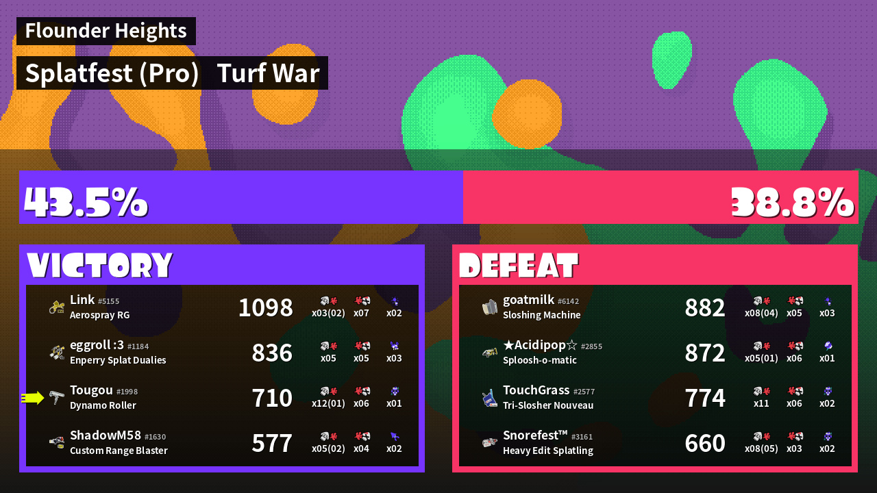 | Medals | #1 Overall Splatter #1 Popular Target #1 Enemy Splatter | ||