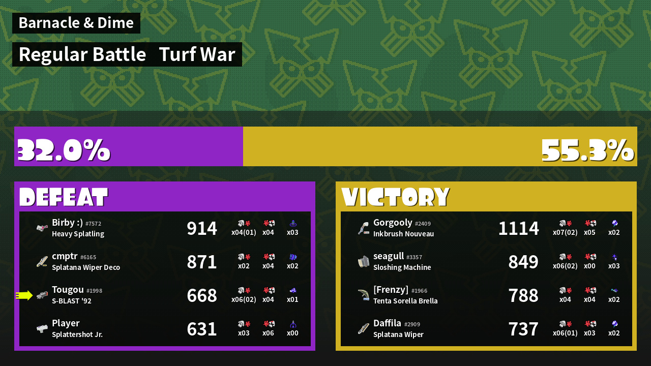 | Medals | #1 Overall Splatter #1 Popular Target #1 Enemy Splatter | ||