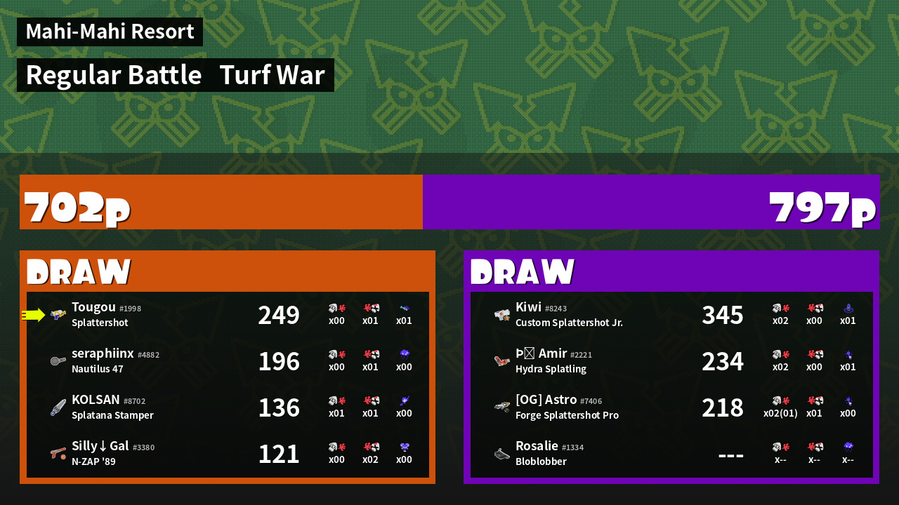 | Weapon | Splattershot ( Suction Bomb / Trizooka) |