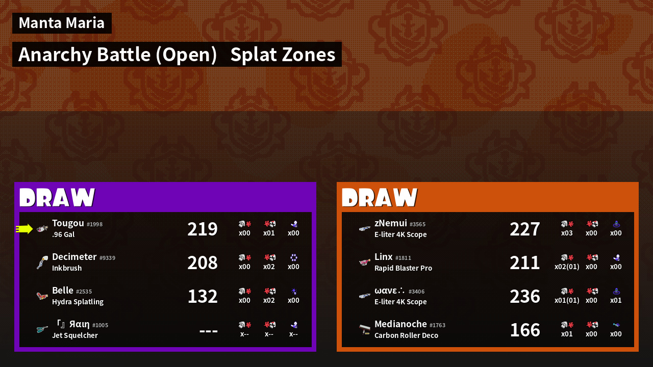 | Mode | Splat Zones - Anarchy Battle (Open) |