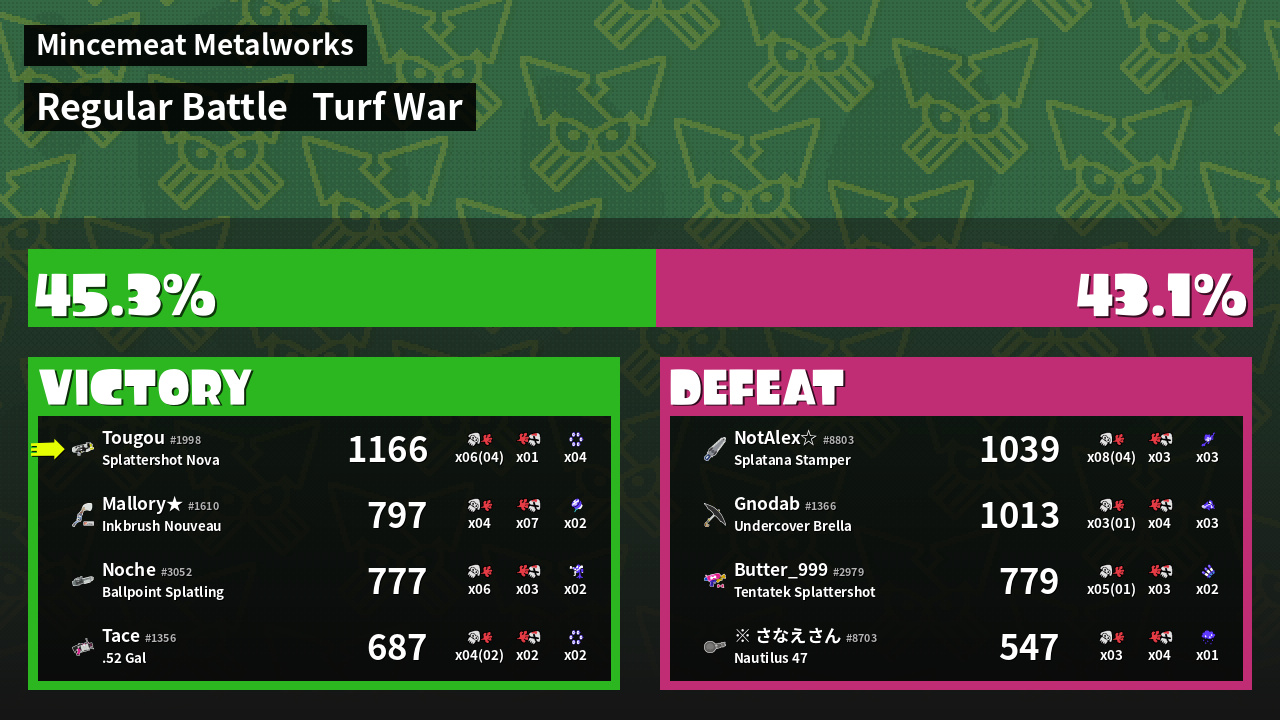 | Mode | Turf War - Regular Battle | ||