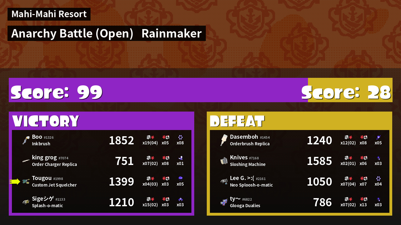 | Mode | Rainmaker - Anarchy Battle (Open) | ||