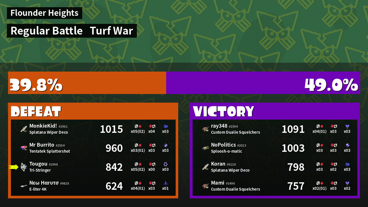 | Medals | #1 Overall Splatter #1 Enemy Splatter #1 Splat Assister | ||
