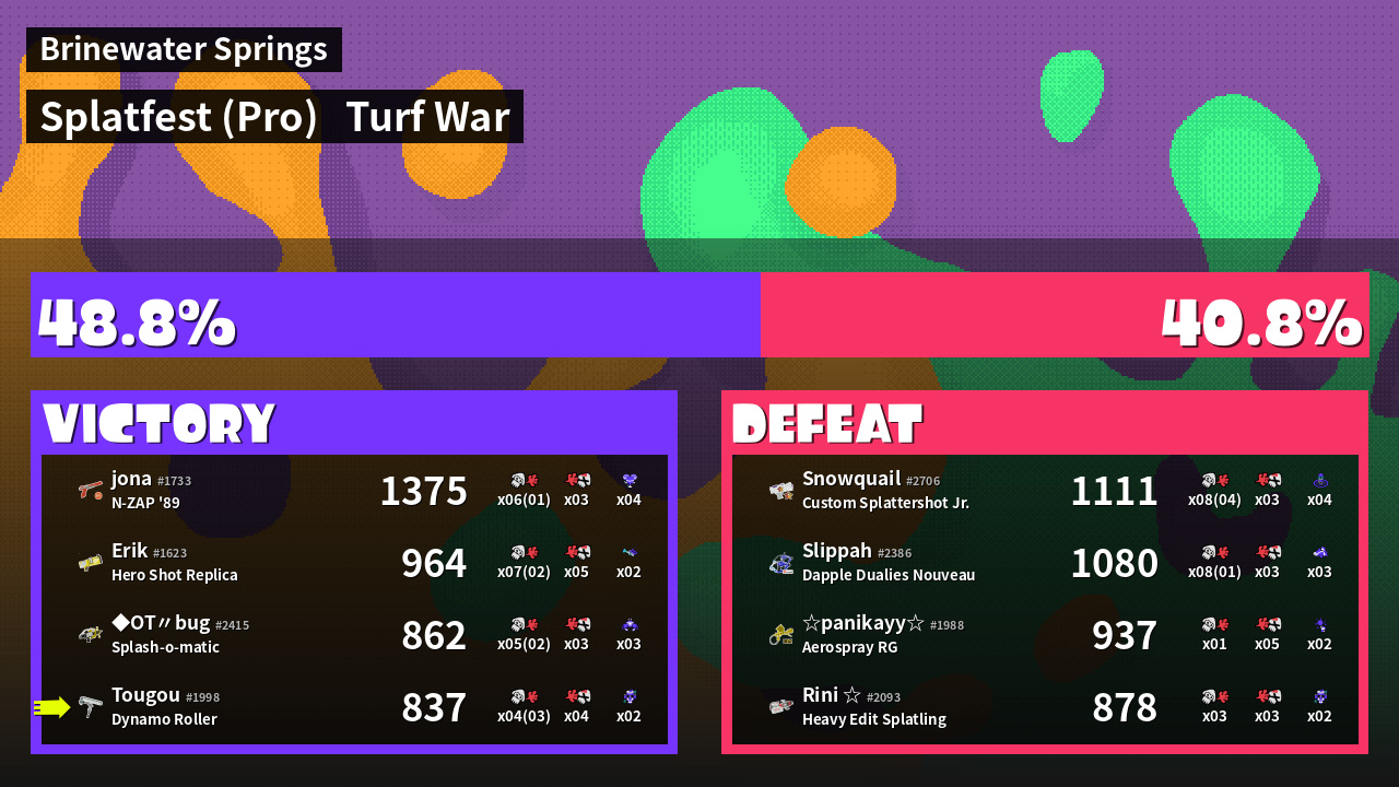 | Mode | Turf War - Splatfest (Pro) | ||