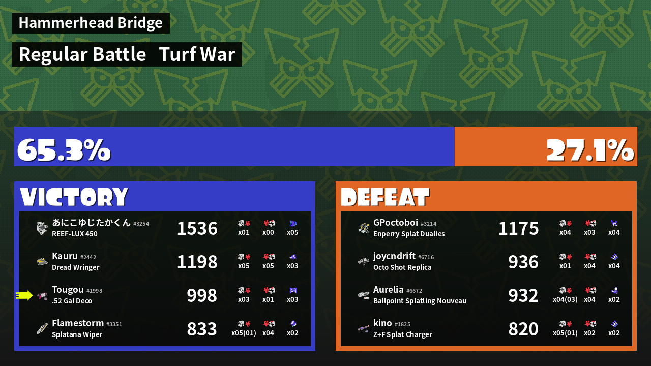 | Weapon | .52 Gal Deco ( Curling Bomb / Splattercolor Screen) | ||